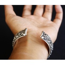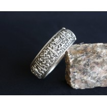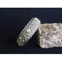 This bracelet is made up of pure silver and crafted by an local artist from Kathmandu. Buddhist practices emphasize seven bowls of water, representing the absolute purity of the Buddhas. Buddha and enlightened deities obviously do not need the offerings, whether food, incense or water. The act of offering is for our own benefit, to shoe we think of our Bodhisattva vows first, that we wish to overcome attachments to these very things we offer. Water, without which there can be no life, is symbolic of our attachments and greed. May All Beings Benefit.