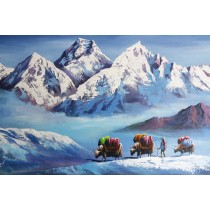 Mount Everest With Yak and Shepherd Acrylic Painting 36" W x 18" H