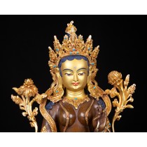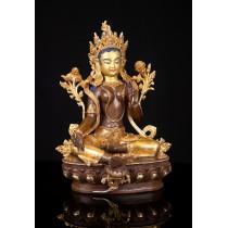 Green Tara Half Gold Gild Statue 25 cm W x 33 cm H x 15 cm B