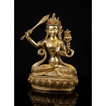 Manjushree Copper Gold Gilded Statue 35 cm W x 44 cm H x 19 cm B