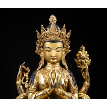 Khacheri (Chenrezig) Copper Gold Gilded Statue 28 cm W x 34.5 cm H x 15 cm B