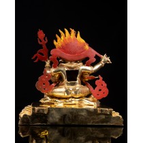 Four Armed Mahakala Gold Gilded Statue 27 cm W x 36 cm H x 15 cm B