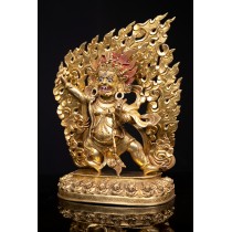This Vajrapani statue is handcrafted from a copper body, it is adorned with 24K gold gilding, complemented by gold and acrylic paintings that enhance its divine presence. Crafted by expert Nepalese artisans, this sacred item embodies the rich traditions of Himalayan Buddhism, making it an important addition to altars, meditation areas, or sacred collections.