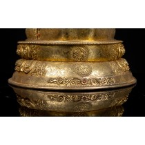 The Peaceful Crown Shakyamuni Buddha Statue symbolizes the Buddha's deep teachings and the path to spiritual awakening. This handcrafted statue made up of copper, decorated with 24K gold gilding, and enhanced with gold and acrylic paints. This sacred statue, created by expert Nepalese artisans, represents the craftsmanship of Himalayan Buddhism, making it an inspirational addition to altars, meditation places, or sacred collections.