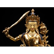 Manjushree Full Gold Gilded Copper Statue 35 cm W x 49 cm H x 20 cm B