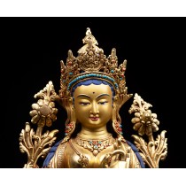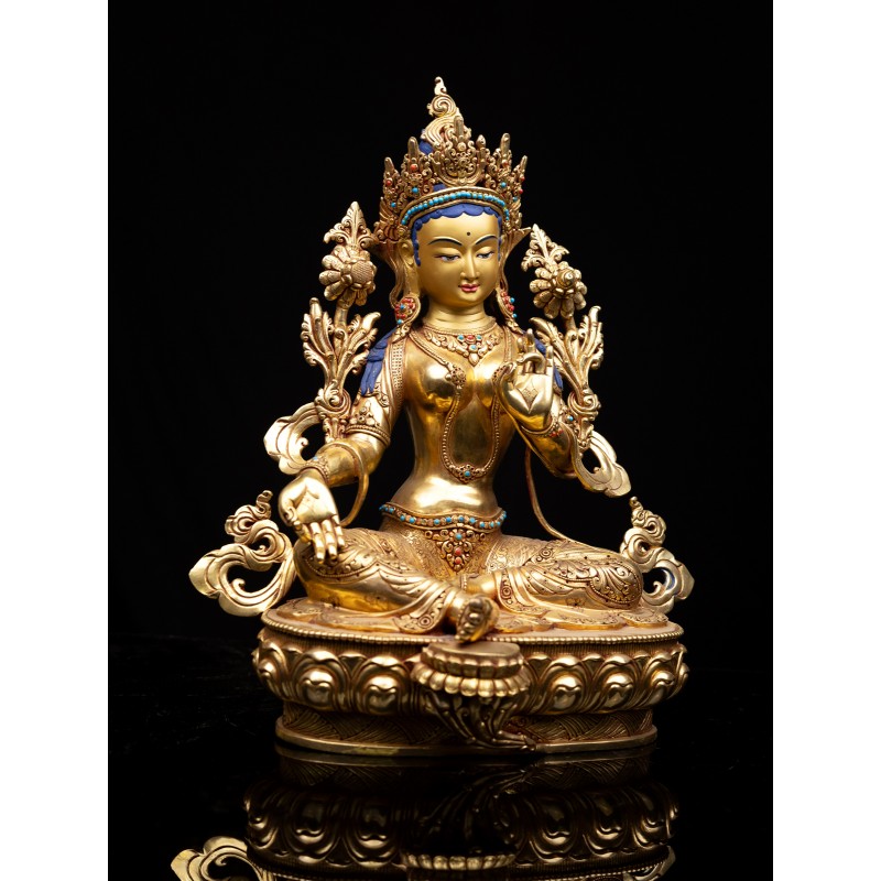 Green Tara Full 24K Gold Gilded Copper Statue 30 cm W x 36 cm H x 17 cm B