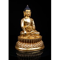 Shakyamuni Buddha Full 24K Gold Gilded Copper Statue 15 cm W x 22 cm H x 12 cm B