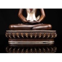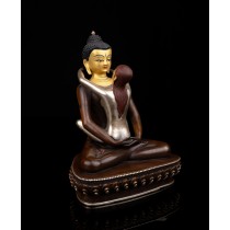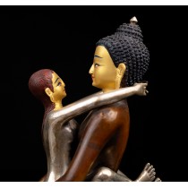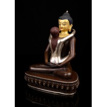 This handmade sculpture is crafted from copper body oxidized of the Samantabhadra consort. Its intricate detailing and smooth finish ensures a long-lasting and eye-catching piece. Sitting on a mon disc of Lotus his two hands are placed in the lap in a meditation gesture, with the two legs folded together in vajra posture, and Samantabhadra is embraced by the consort Samantabhadri, who appears peaceful.