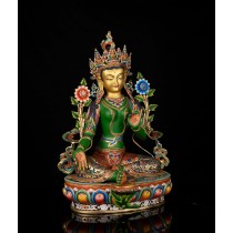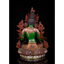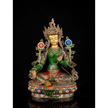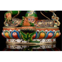 This meticulously crafted Green Tara statue, adorned with intricate gold-gilt detailing and turquoise inlays, is a stunning addition to any home or sacred space. As the Mother of All Buddhas, Green Tara is revered for her unwavering compassion and ability to alleviate suffering.