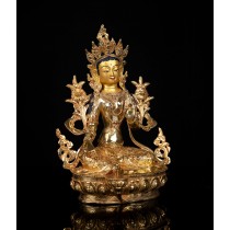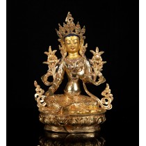 Green Tara Full 24K Gold Gilded Copper Statue 25 cm W x 32 cm H x 20 cm B