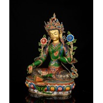 Green Tara Full 24K Gold Gilded Copper Statue 40 cm W x 65 cm H x 35 cm B