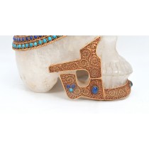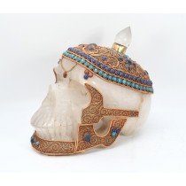 The Crystal Skull With full Gold Plated, metal Setting, And stone Setting has full gold plated antique finishing. This finishing is a combination of fire mercury gold plating and antique finishing. This traditional technique involves the application of a genuine layer of gold onto the Crystal Skull With [full Gold Plated], [metal Setting], And [stone Setting] using the time-honored process of mercury gold plating.