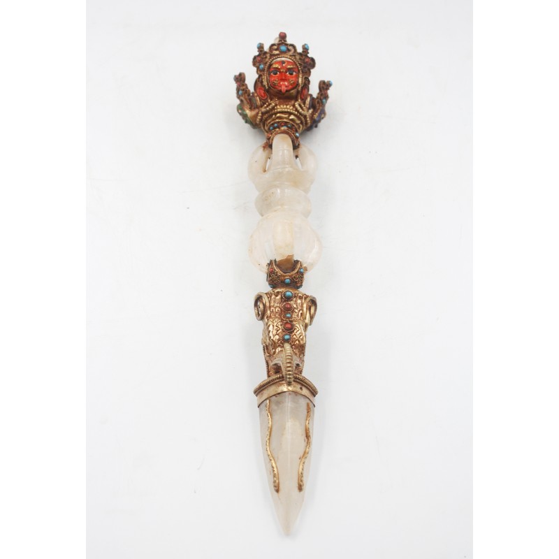 3 Headed Crystal Tibetan Phurba 14" H