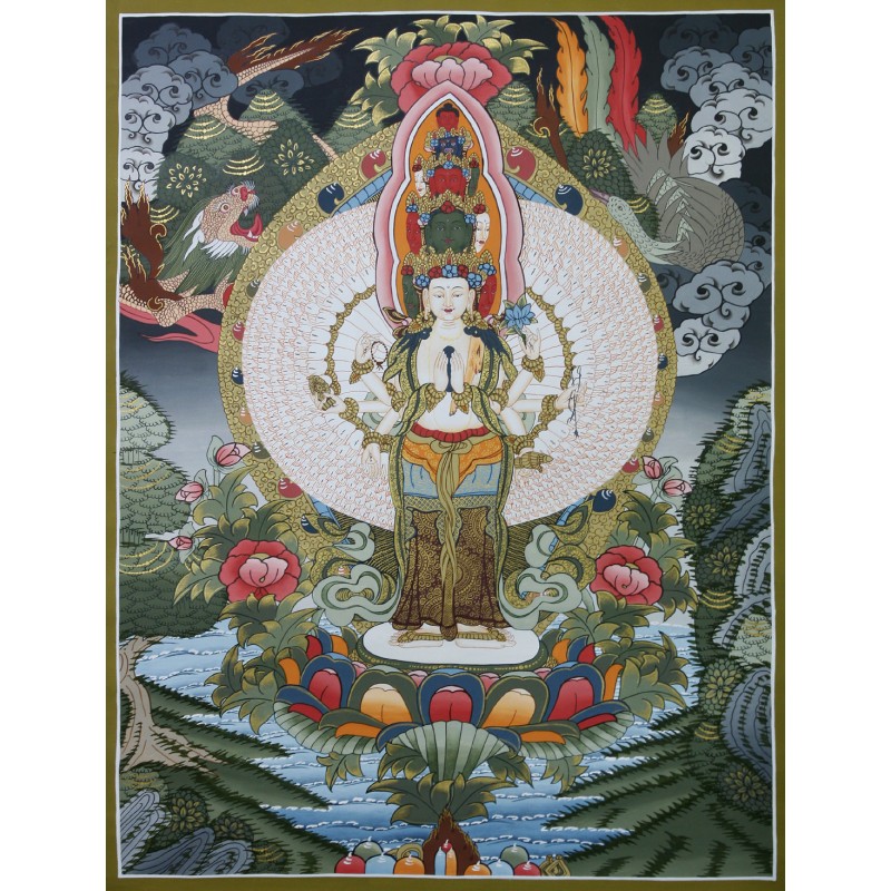 1000 Armed Avalokiteshvara Tibetan Thangka Painting 24" W x 34" H