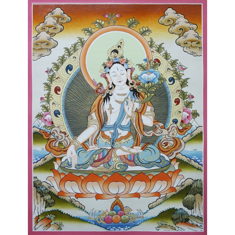 White Tara Tibetan Thangka Painting 20.5" W x 26" H