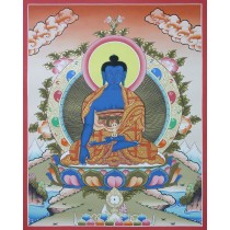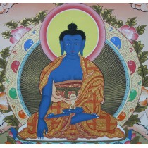 Medicine Buddha Tibetan Thangka Painting 20.5" W x 26" H